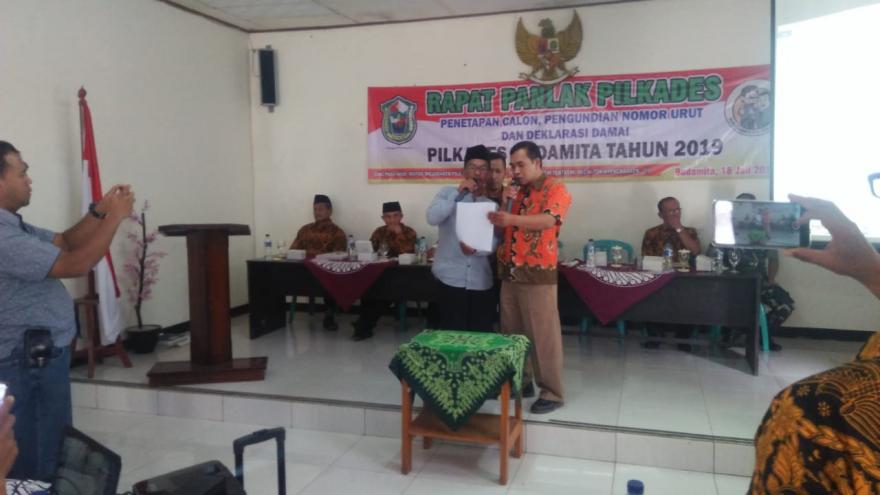 Setelah proses pengundian nomor calon kepala desa Badamita selesai dilaksanakan, maka sesuai pentahapan Pilkades serentak Kabupaten Banjarnegara dilanjutkan dengan deklarasi damai dari masing-masing calon yang dituangkan dalam berita acara.