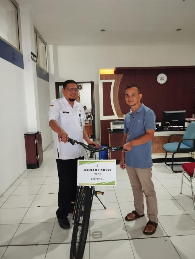 Melalui undian, salah satu warga desa Badamita atas nama Nurul Idris (04/03) mendapatkan hadiah 1 buah sepeda MTB yang diambil dia lobbu Gedung B BPPKAD Banjarnegara pada Rabu 18 Desember 2024.