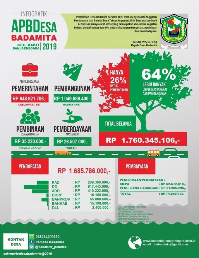 Tindak lanjut dari pembahasan dan penyepakatan APBDes 2019 bersama Badan Permusyawaratan Desa (BPD) adalah ditetapkan dan diundangkannya Anggaran Pendapatan dan Belanja Desa (APBDes) Tahun 2019 pada tanggal 28 Desember 2018. Hal ini sesuai dengan Pasal 38 Ayat (2) Peraturan Menteri Dalam Negeri Nomor 20 Tahun 2018 tentang Pengelolaan Keuangan Desa dan Pasal 47 Ayat (2) Peraturan Bupati Banjarnegara Nomor 76 Tahun 2018 tentang Pengelolaan Desa, dimana APBDes ditetapkan paling lambat tanggal 31 Desember.