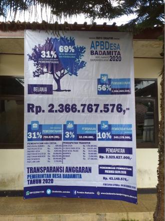 Kepala Desa Badamita Rahmatulloh, mengatakan bahwa papan transparansi tersebut di pasang sebagai wujud keterbukaan Pemerintah Desa kepada masyarakat dalam pengelolaan anggaran secara transparan dan terbuka.