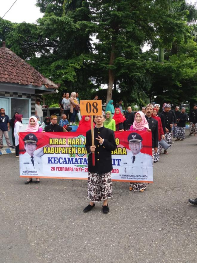 Kirab hari jadi Kabupaten Banjarnegara ke-449, berlangsung meriah. Sejak pagi masyarakat sudah berjejer rapi sepanjang jalan yang dilalui peserta kirab. Barisan Kirab diawali dengan dari barisan Manggala Yudha, cucuk lampah, pembawa spanduk, penabuh genderan, barisan pembawa pusaka, barisan pembawa tombak prajurit, dan berisan pembawa foto bupati.